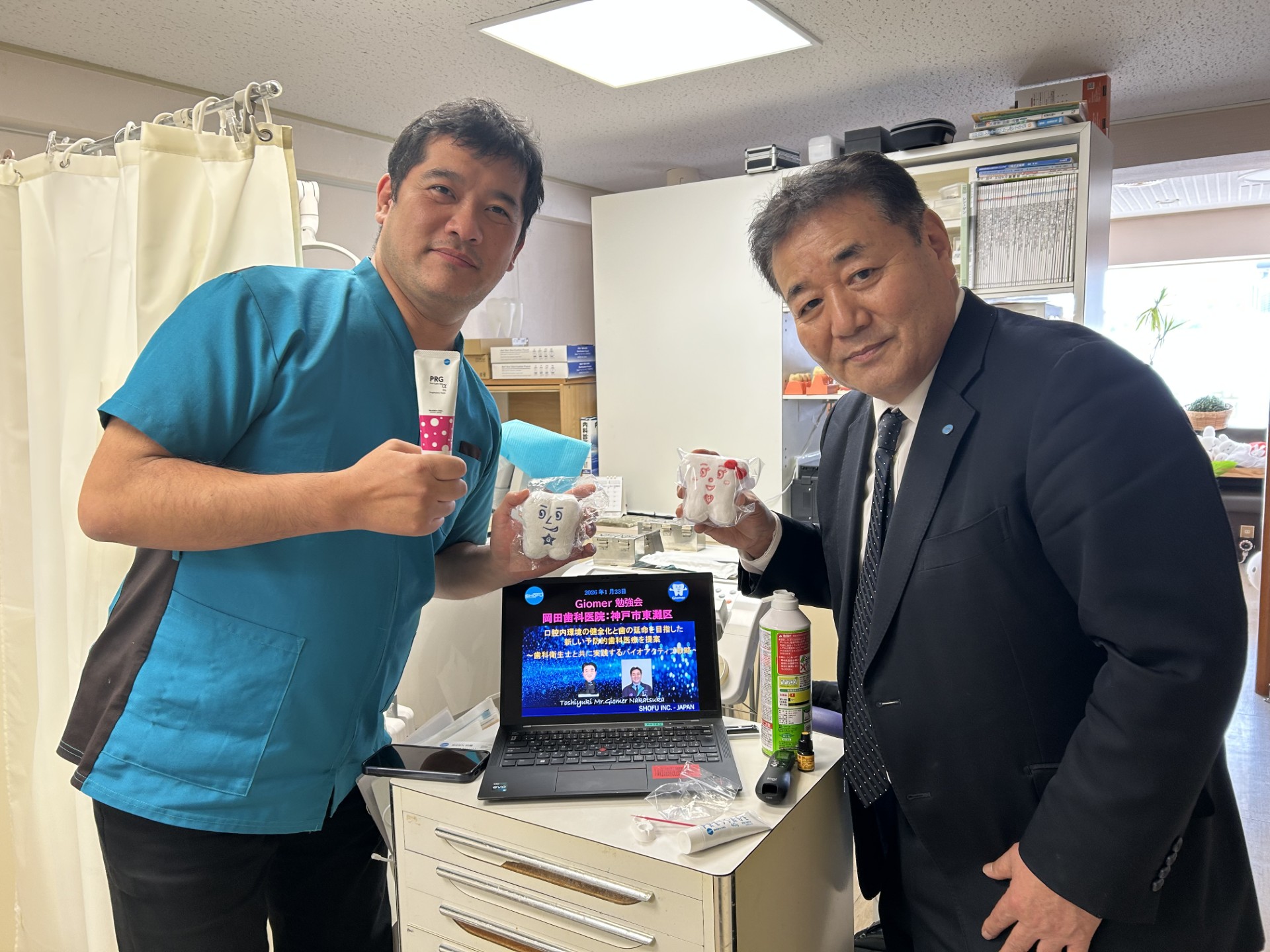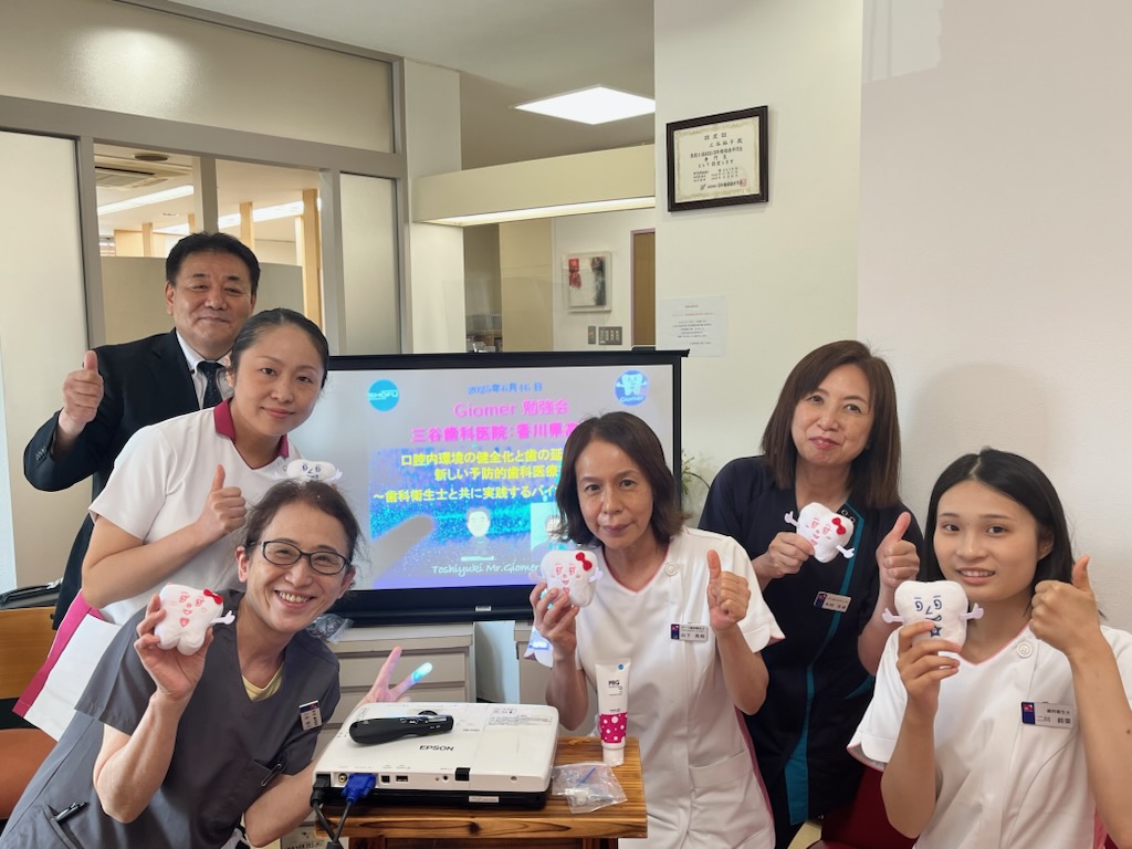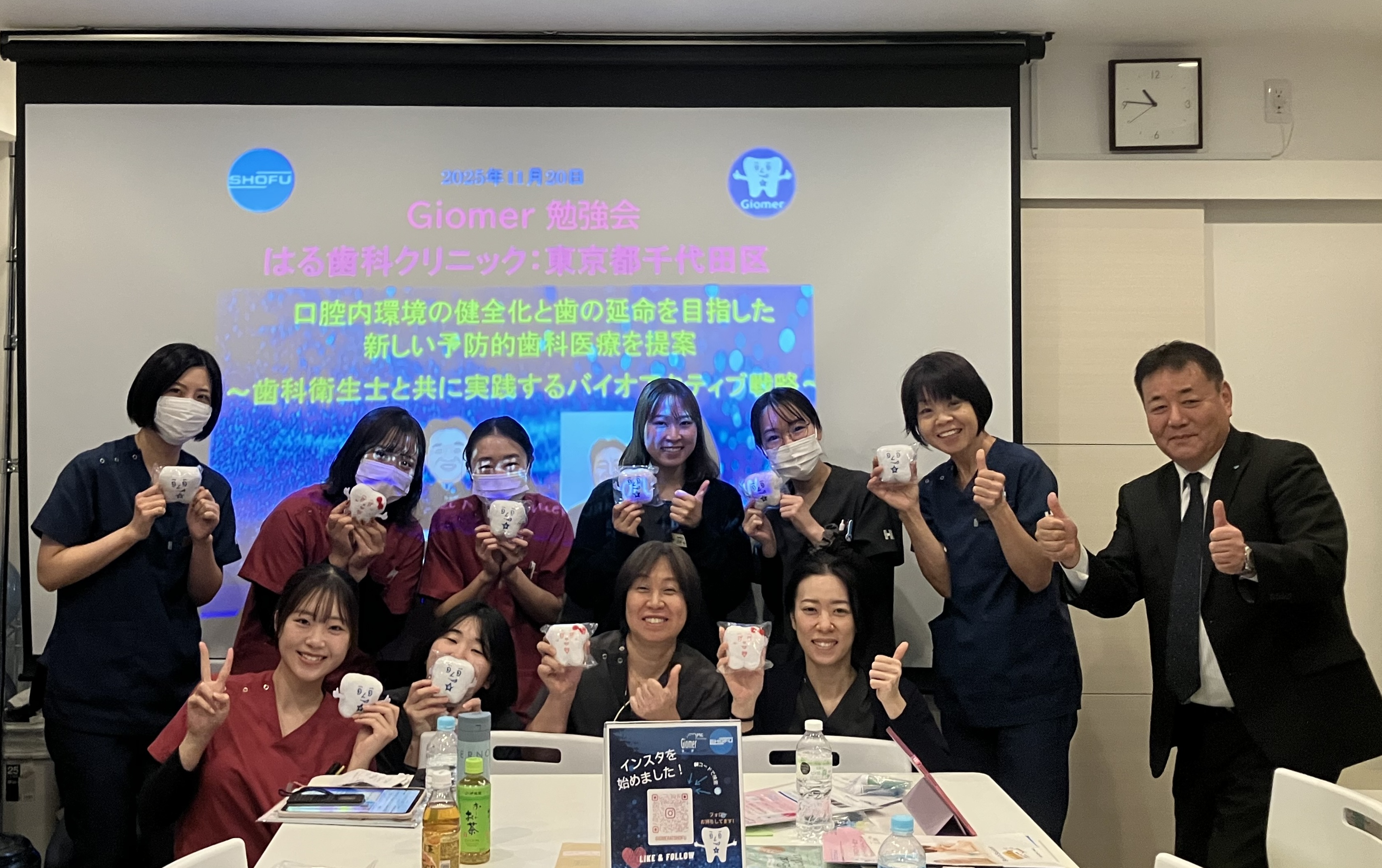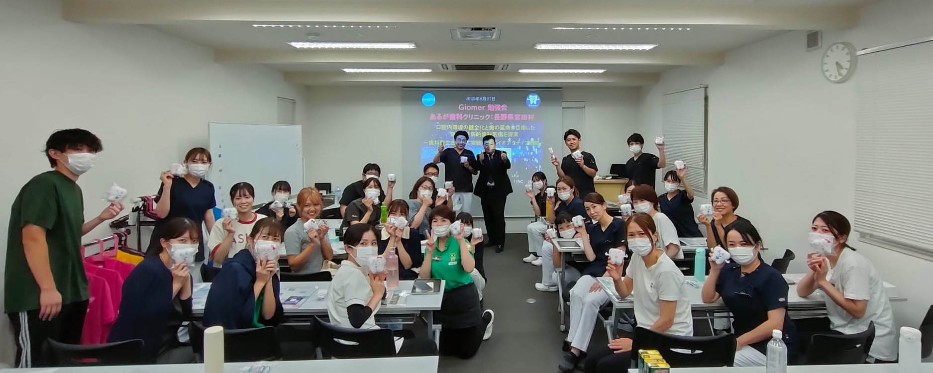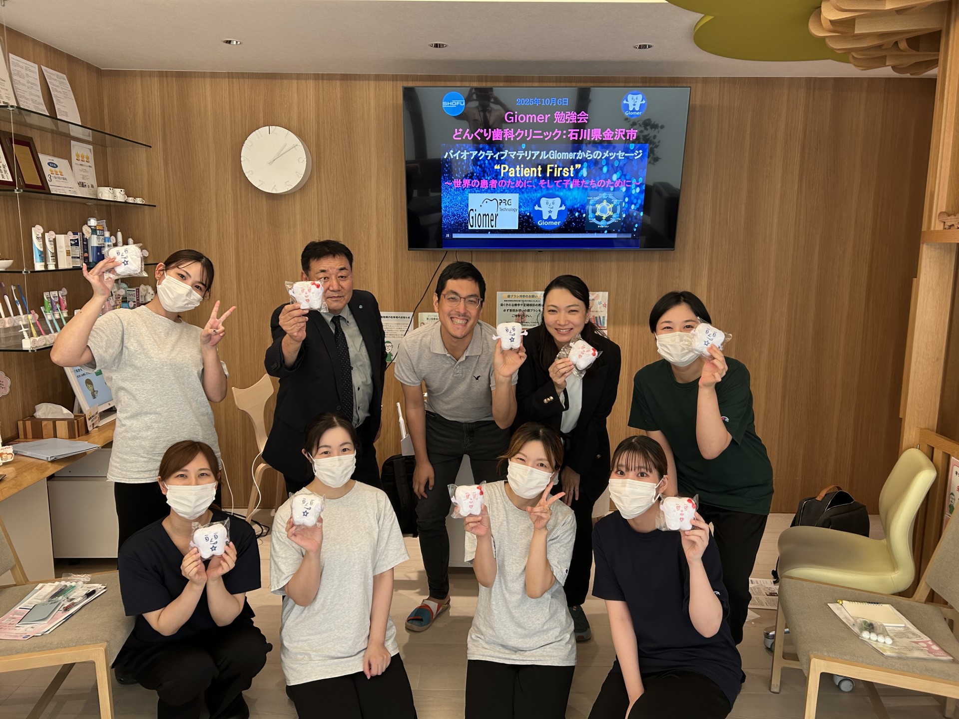【Dr HY】 この度は勉強会を開催していただき、誠にありがとうございます。 Giomerに関する研究とともに、エビデンスに基づいた臨床応用について、ユーモアを交えながら様々な知見を得る事ができました。 患者さんにどれだけメリットがあるかという視点からのGiomerの開発の話も聞けて感銘を受けたとともに、まだまだ可能性を秘めたGiomerだと認識しました。 また、Mr. Giomerの軽快なトークと共に最新の知見をご教授いただけたらと思っております。 【DH MI】 エビデンスが色々と提示されていて説得力がありました。 【Dr SH】 サイエンスに基づいた素晴らしい研修内容でした。もう少し笑いが欲しかったです。