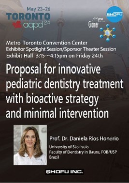 出展者セミナーでは、「小児歯科におけるバイオアクティブ戦略及びMIに基づいた新たな治療を提案」をテーマにサンパウロ大学歯学部(ブラジル)のDaniela Rios Honório先生にご講演頂きました。