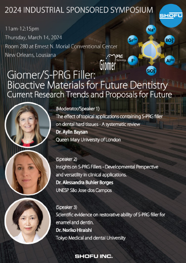 This year’s General Session was attended by more than 4,000 participants representing 85 countries across the world. Shofu had a strong presence at IADR this year, holding a symposium on the potential of bioactive materials for future dentistry. Giomer products, which contain bioactive S-PRG fillers, were on full display at the exhibition site.
